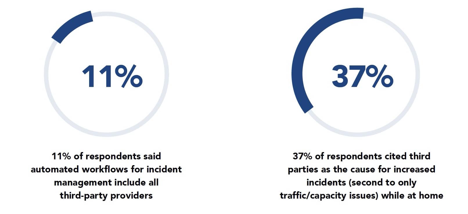 - 37%的受访者认为第三方是导致居家办公时事故增加的原因(仅次于流量/容量问题)。