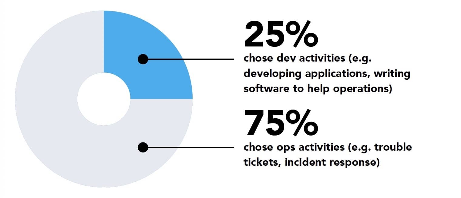 - 25% : 选择开发活动(如:开发应用,写有助于运维的软件)