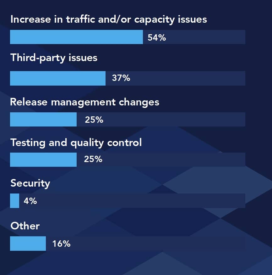 流量和(或)容量问题的增加被认为是导致事故增加的首要因素。第三方被认为是第二大因素,这也是为什么,我们在本报告的第一部分中,讨论了有必要考虑如何处理第三方依赖的策略。