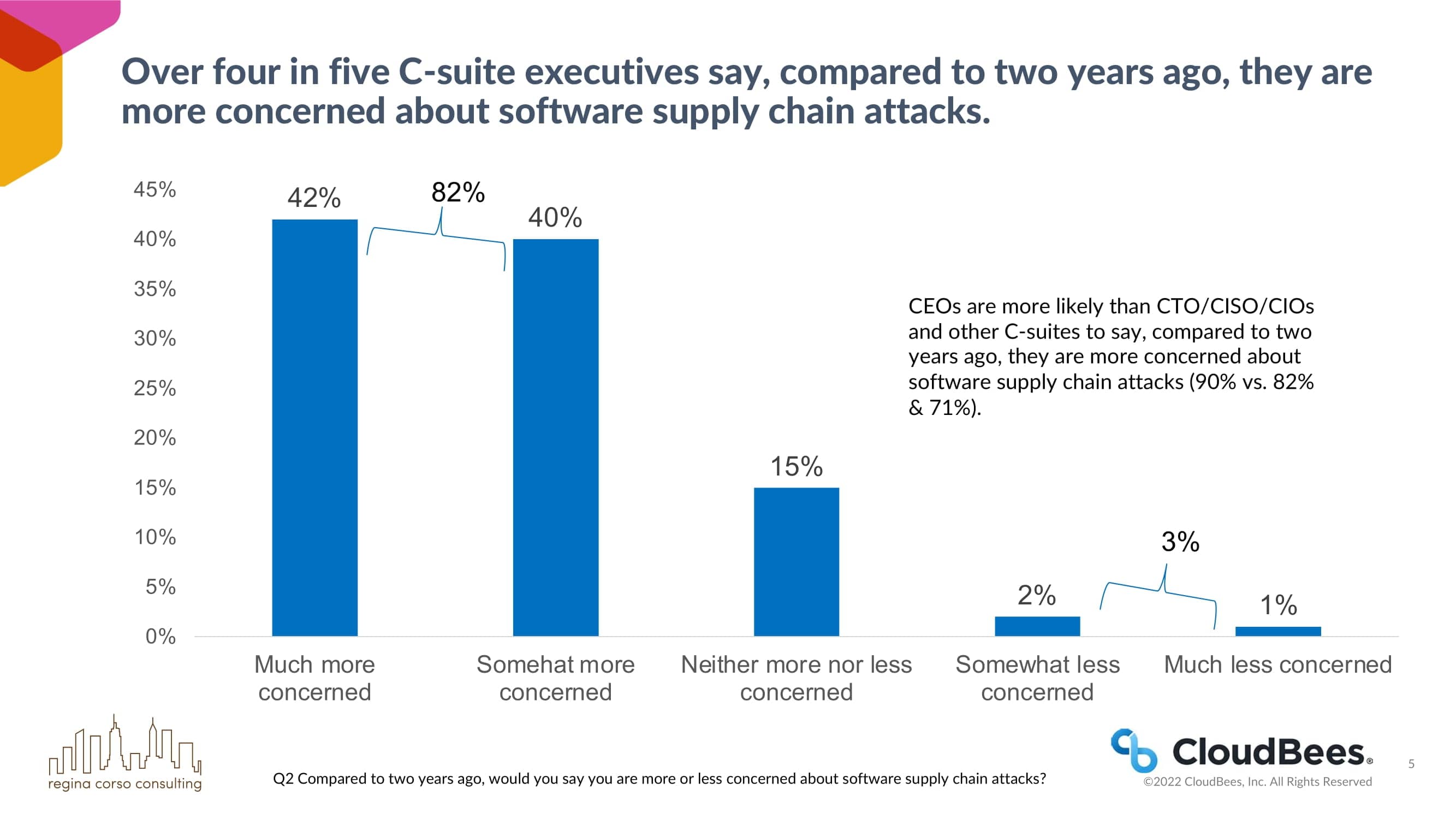 超过五分之四的C-suite高管表示,与两年前相比,他们对软件供应链攻击更加担忧。