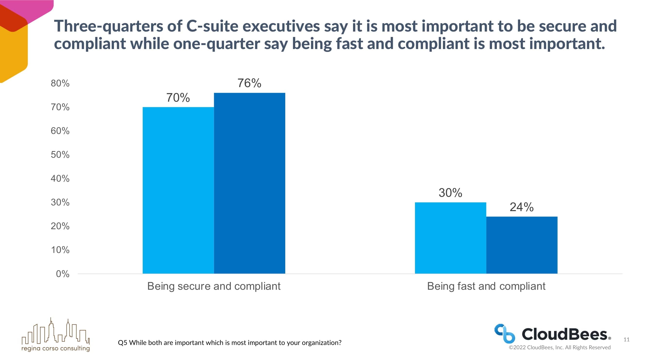 四分之三的C-suite高管表示,安全和合规是最重要的,而四分之一的人表示快速和合规是最重要的。