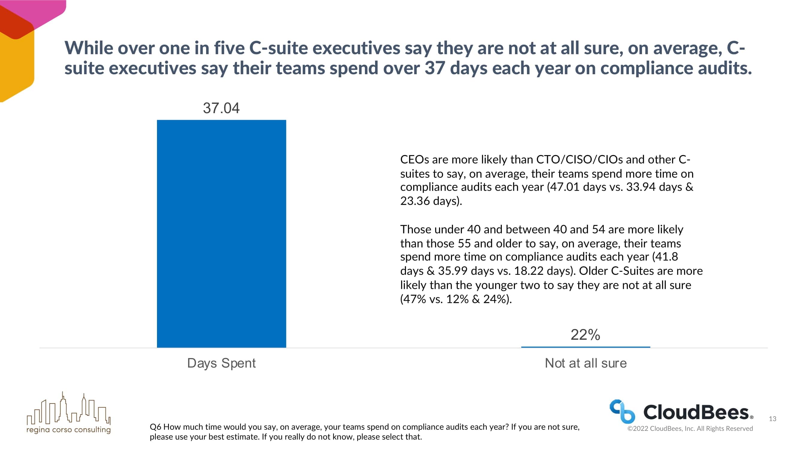 虽然超过五分之一的C-suite高管表示他们完全不确定,但平均而言,C-suite高管表示他们的团队每年花在合规性审计上的时间超过37天。