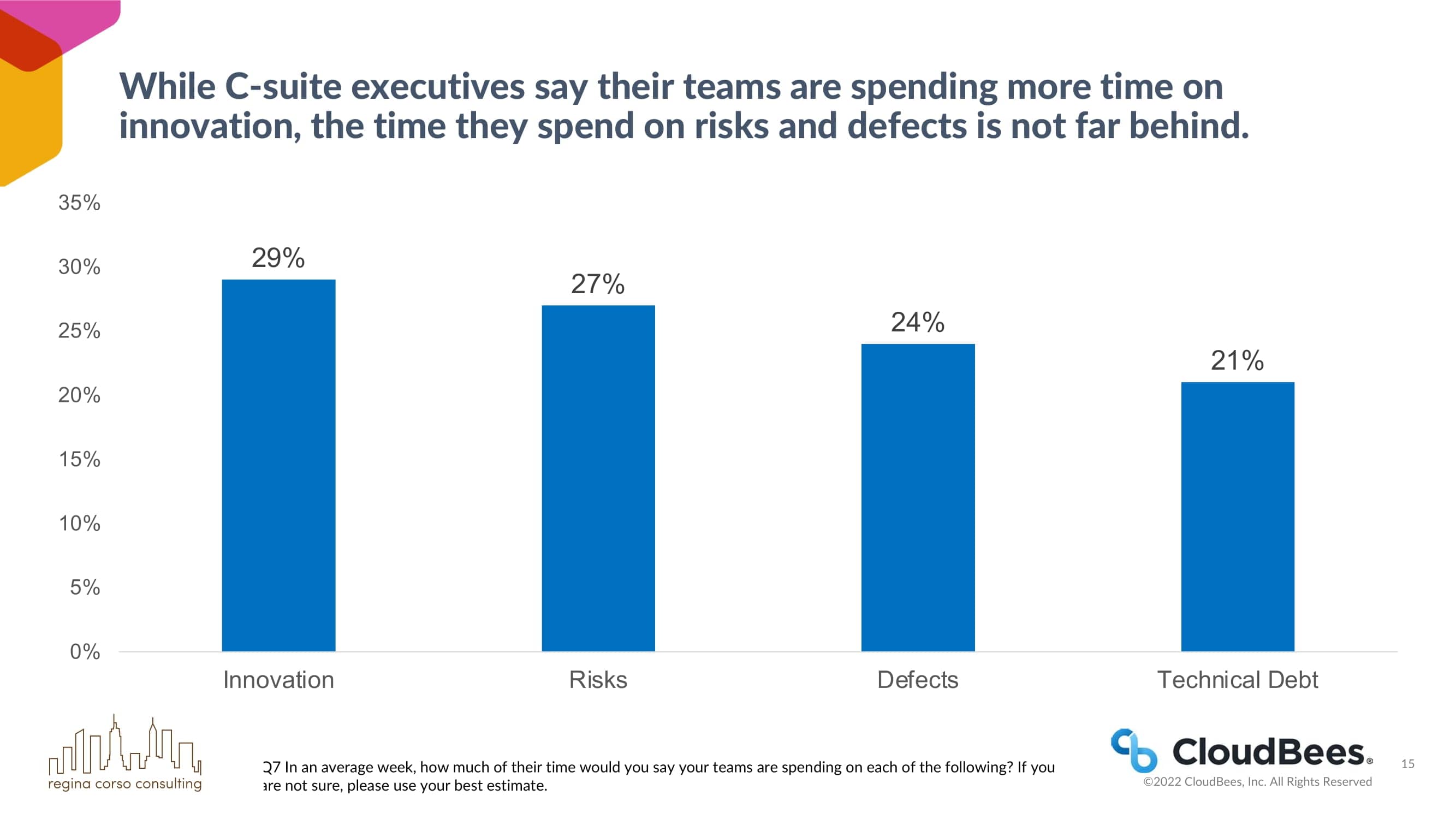 尽管首席执行官们说他们的团队在创新上花费了更多的时间,但他们在风险和缺陷上花费的时间也相差不远。