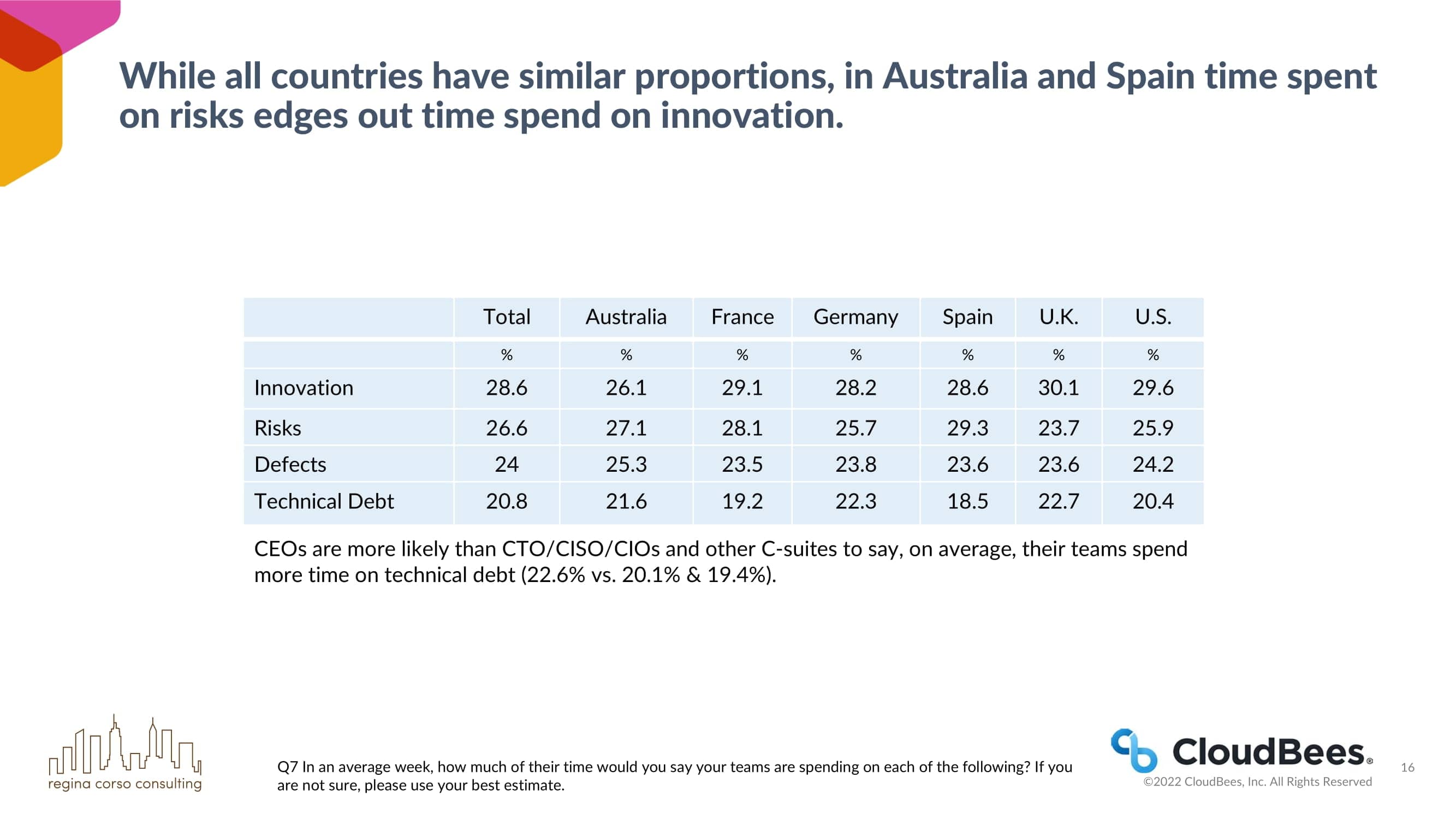 虽然所有国家的比例都差不多,但在澳大利亚和西班牙,花在风险上的时间比花在创新上的时间多。