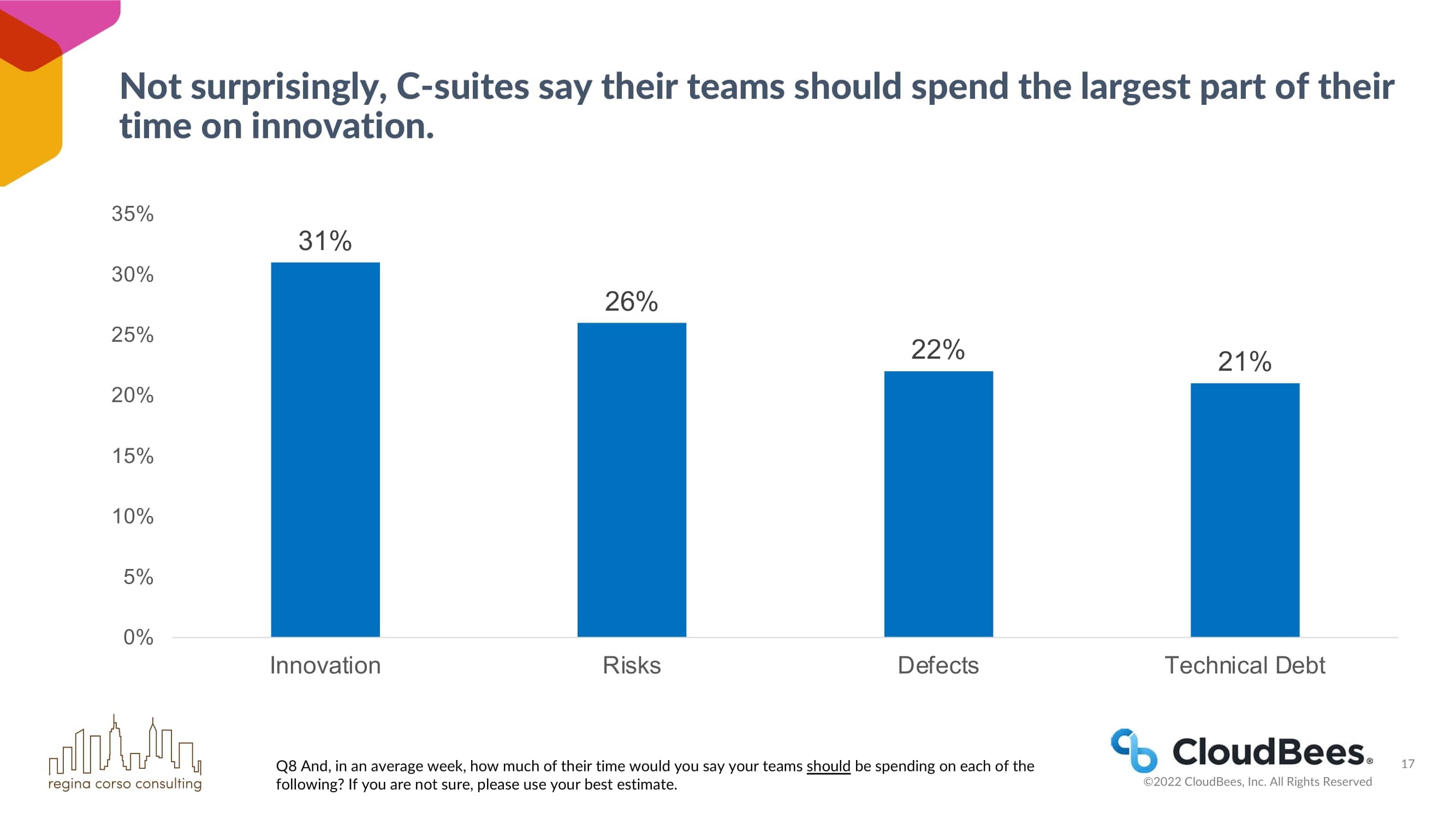 毫不奇怪,C-suites说他们的团队应该把最大的时间花在创新上。