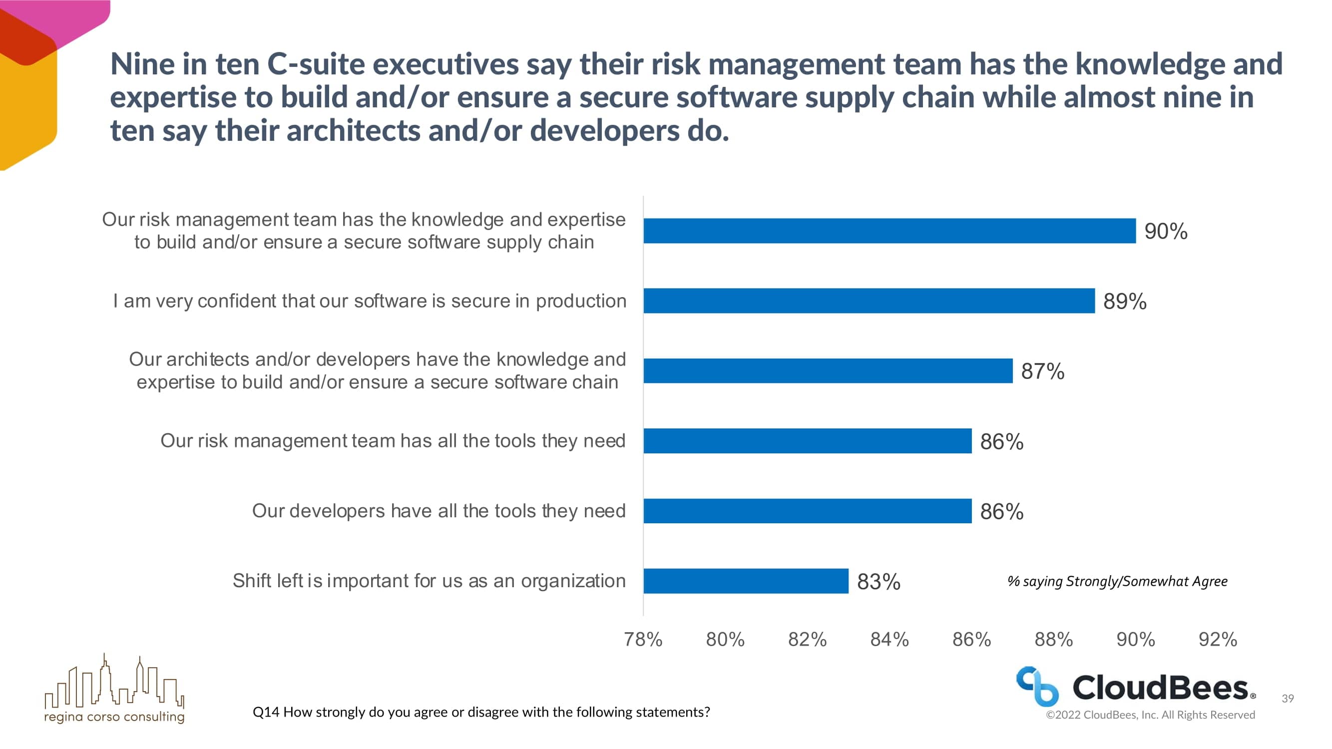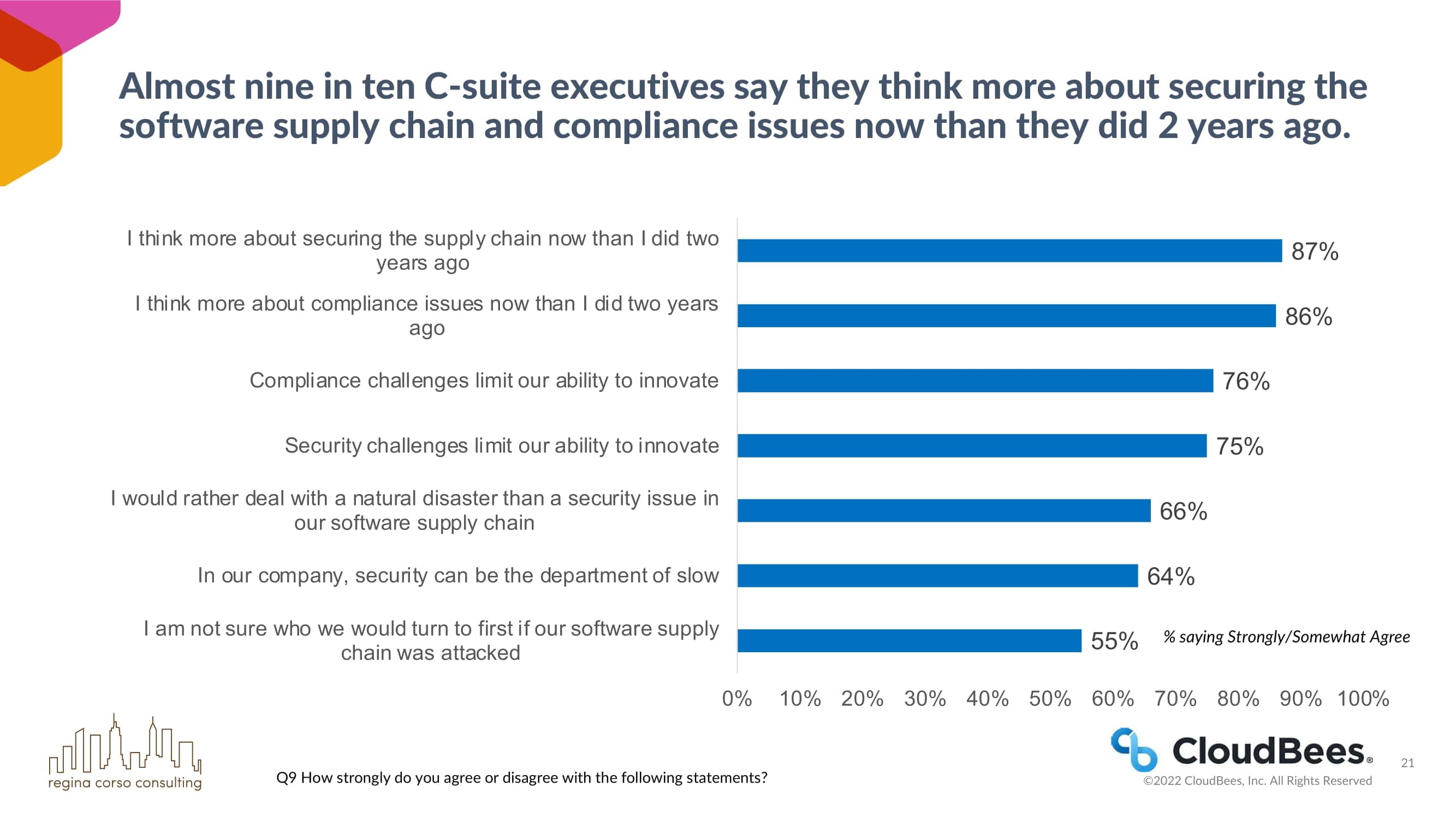 几乎十分之九的C-suite高管表示,与两年前相比,他们现在更多地考虑保障软件供应链的安全和合规问题。