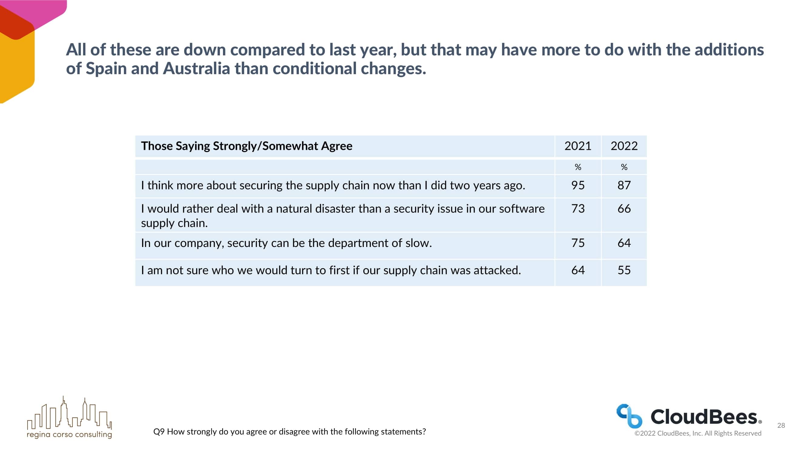 - 他们现在比两年前更多地考虑合规问题(93% vs. 85%和79%)。