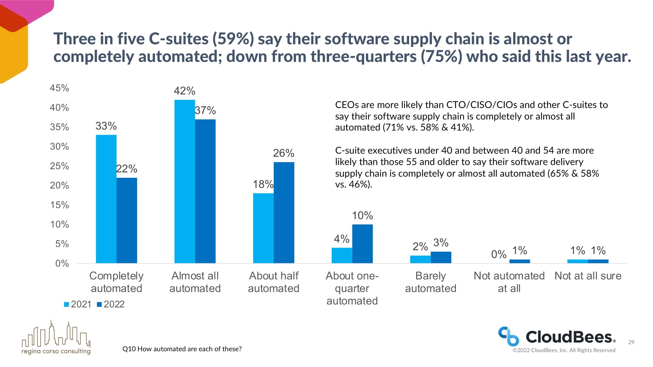 五分之三的C-suites(59%)说他们的软件供应链几乎或完全自动化;比去年的四分之三(75%)有所下降。