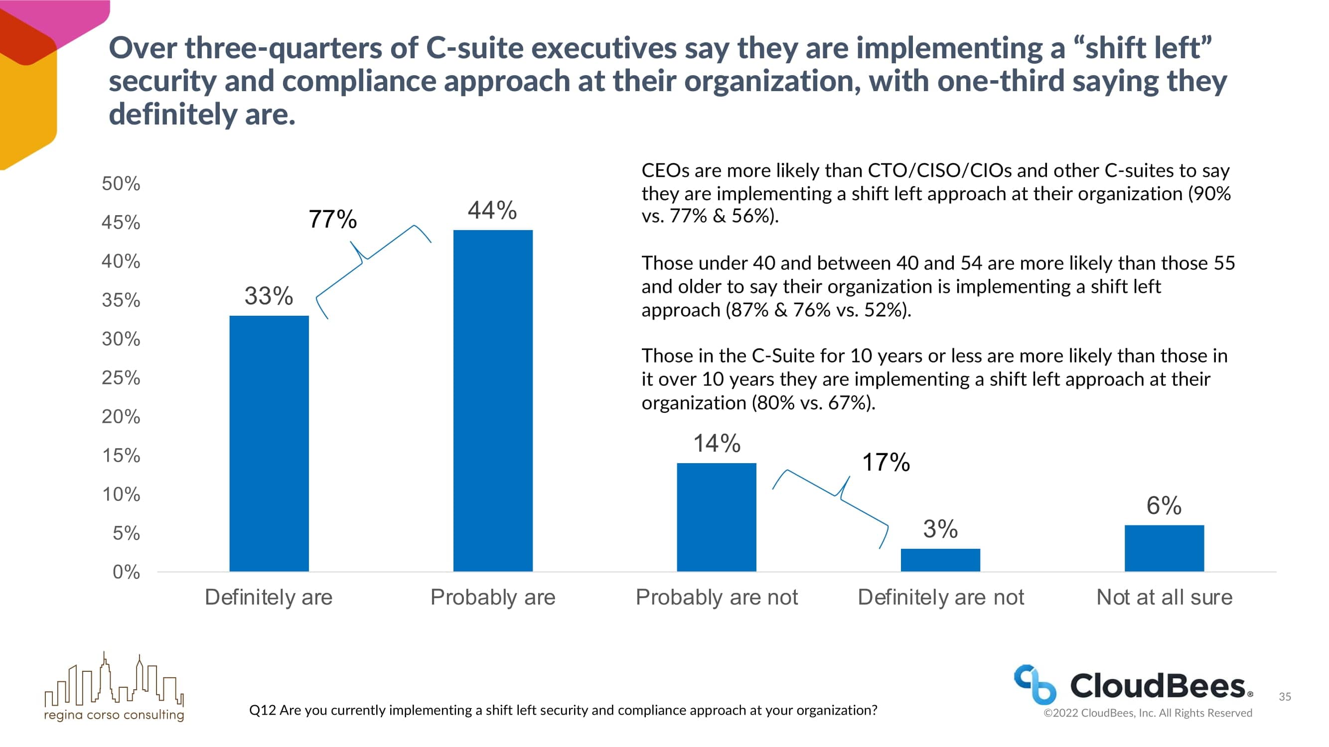 超过四分之三的C-suite高管表示,他们正在其组织中实施 “左移 “的安全和合规方法,其中三分之一表示他们肯定在实施。