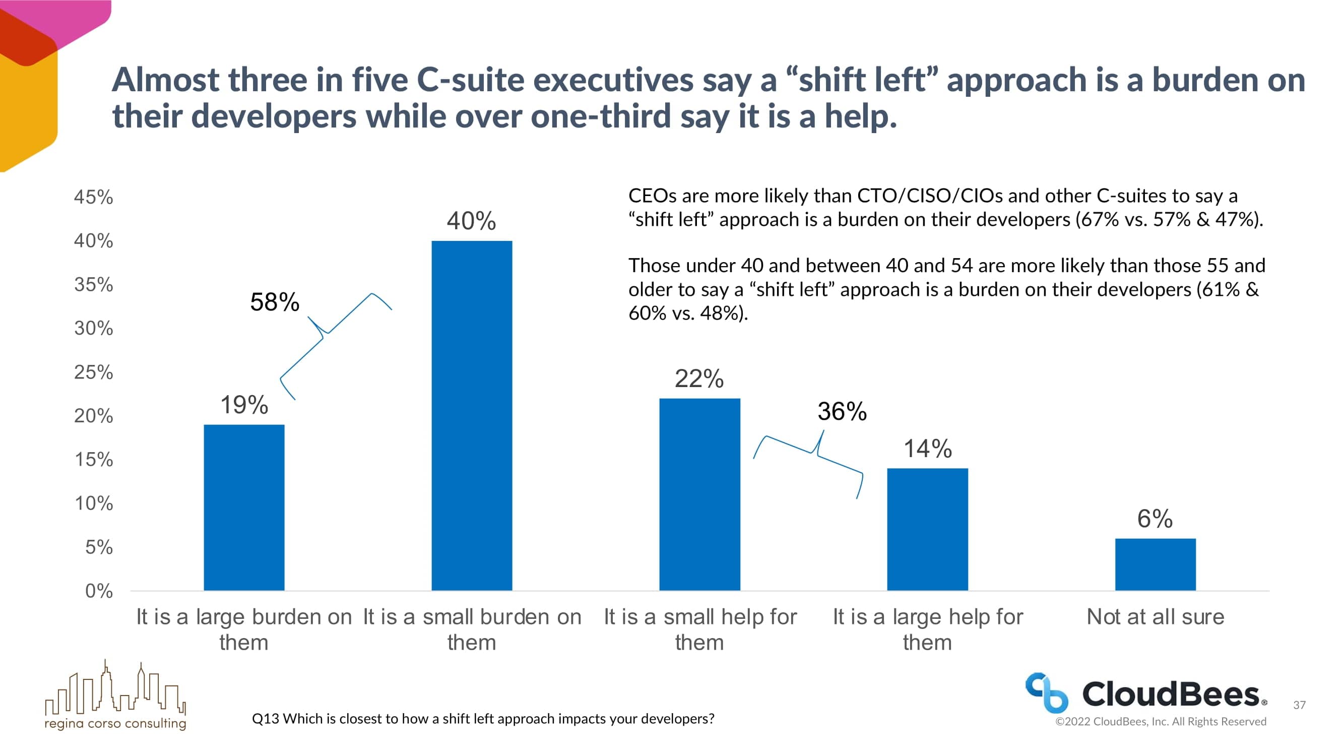 近五分之三的C-suite高管说 “左移 “方法对他们的开发人员是一种负担,而超过三分之一的人说它是一种帮助。