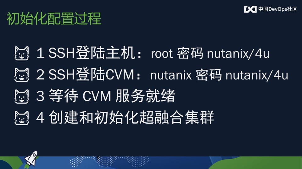 在安装完第一次重启的过程中,我们需要一些等待时间,逐步确认超融合系统的充分就绪,一下每个步骤必须顺序进行,不可跳跃进行: