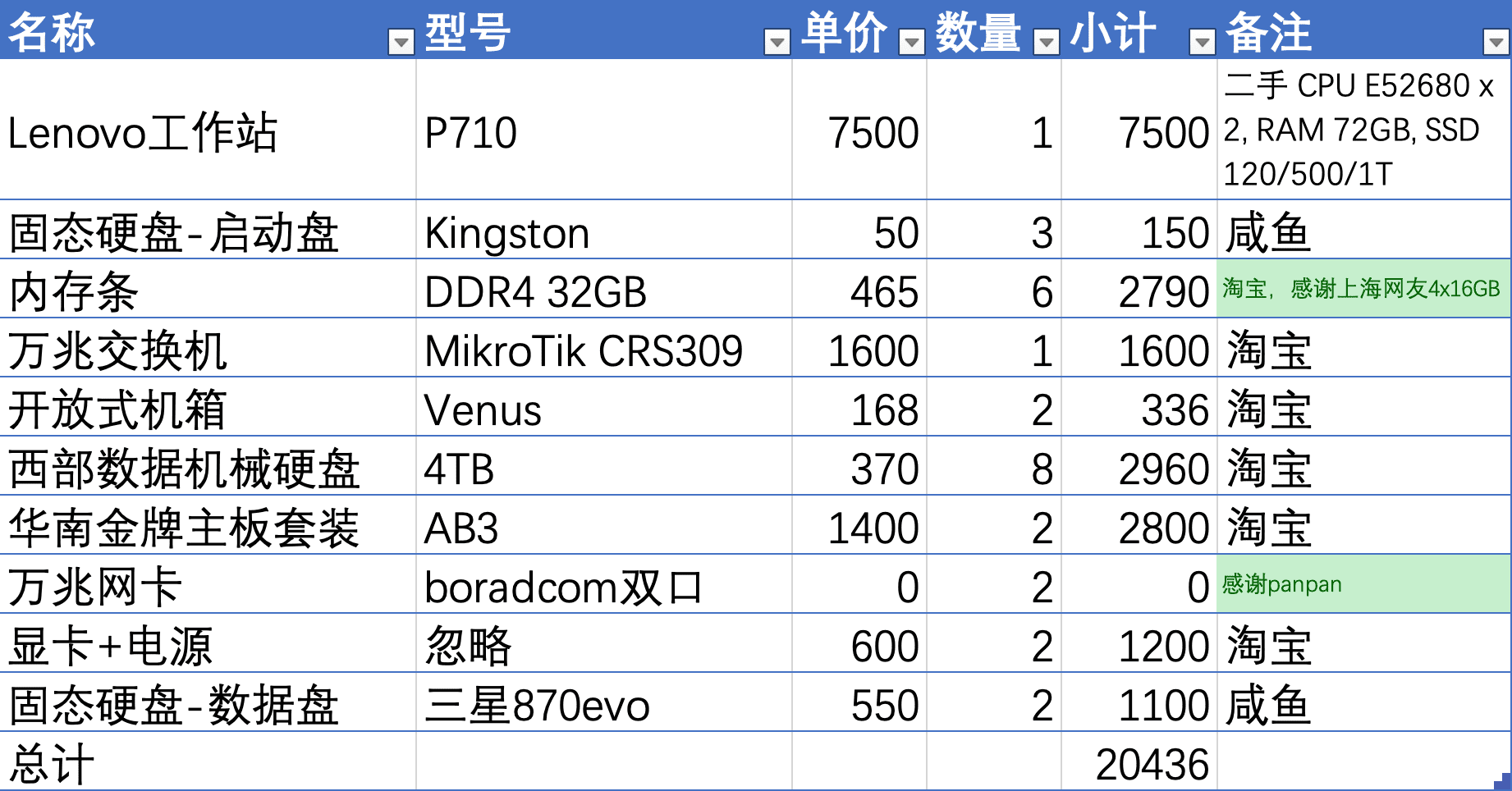 下面是网购订单的统计信息,希望对于想自行攒机的朋友,或者对扩容利旧服务器的朋友有些帮助。