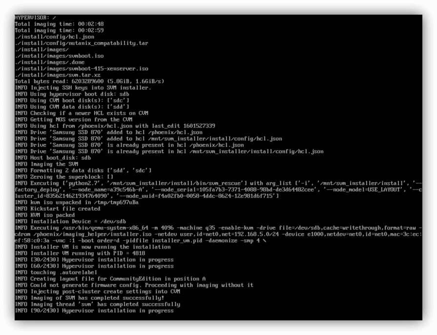 Nutanix CE版的安装可能会持续1小时左右,过程中包含比较多的自动化操作流程,基本需要用户少量的输入操作,其他更多的是等待时间。